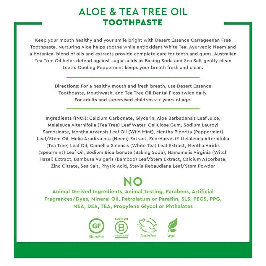 Desert Essence Aloe & Tea Tree Oil Carrageenan Free Toothpaste 6.25 oz. Desert Essence Aloe & Tea Tree Oil Carrageenan Free Toothpaste 6.25 oz. Desert Essence Aloe & Tea Tree Oil Carrageenan Free Toothpaste 6.25 oz.