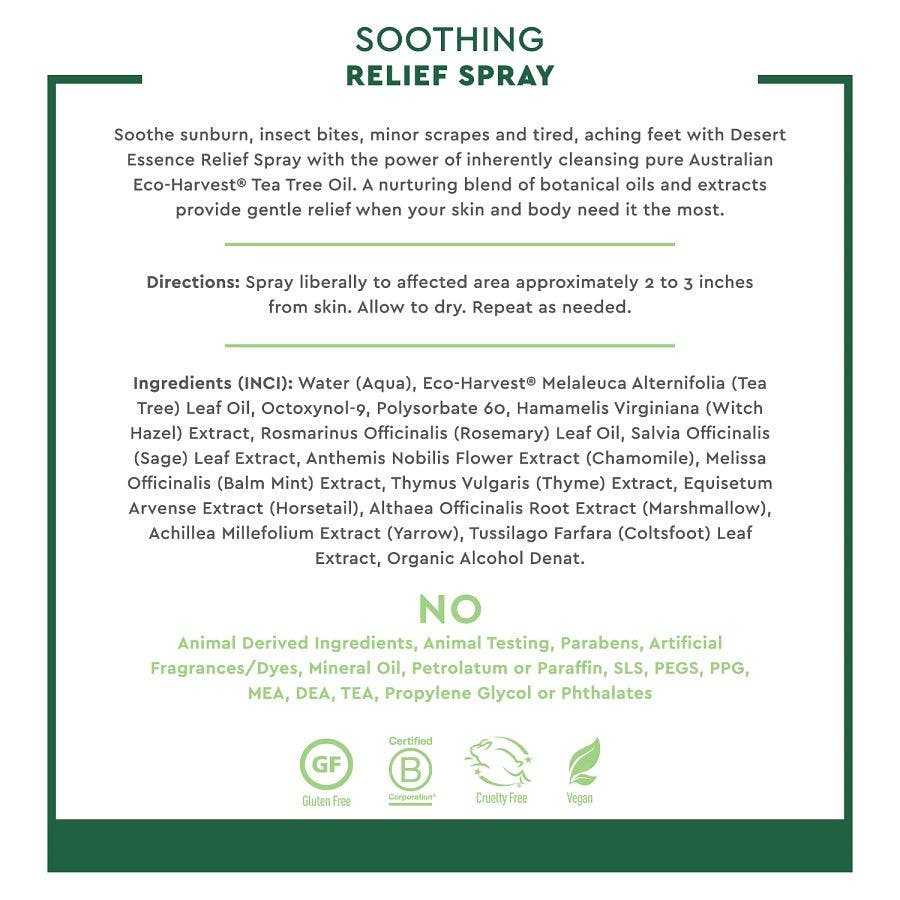 Desert Essence Tea Tree Oil Soothing Relief Spray 4 fl. oz. Desert Essence Tea Tree Oil Soothing Relief Spray 4 fl. oz. Desert Essence Tea Tree Oil Soothing Relief Spray 4 fl. oz. Desert Essence Tea Tree Oil Soothing Relief Spray 4 fl. oz.