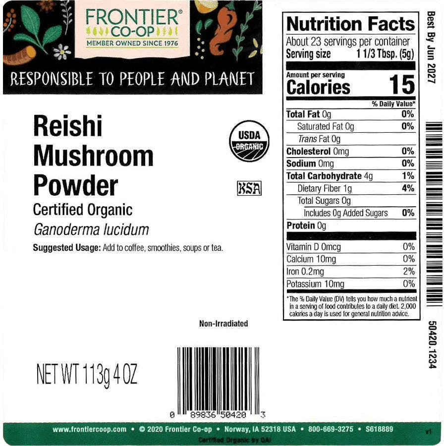 Frontier Co-op Reishi Mushroom Powder, Organic 1/4 lb. Frontier Co-op Reishi Mushroom Powder, Organic 1/4 lb. Frontier Co-op Reishi Mushroom Powder, Organic 1/4 lb. Frontier Co-op Reishi Mushroom Powder, Organic 1/4 lb. Frontier Co-op Reishi Mushroom Powder, Organic 1/4 lb.