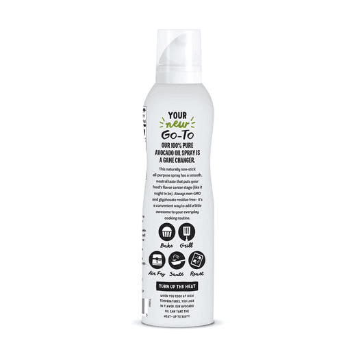 Our 100% pure Avocado Oil Spray is the perfect kitchen companion, offering you versatility and a high smoke point. We consider it a kitchen workhorse. Using an expeller-press method, we extract the maximum amount of high-quality oil from the avocado without applying excess heat or chemicals. The result? A neutral flavor profile that adds a bit of sunshine to all of your cooking projects. Every bottle of Chosen Foods Avocado Oil is 100% pure, non-GMO, and glyphosate residue-free.