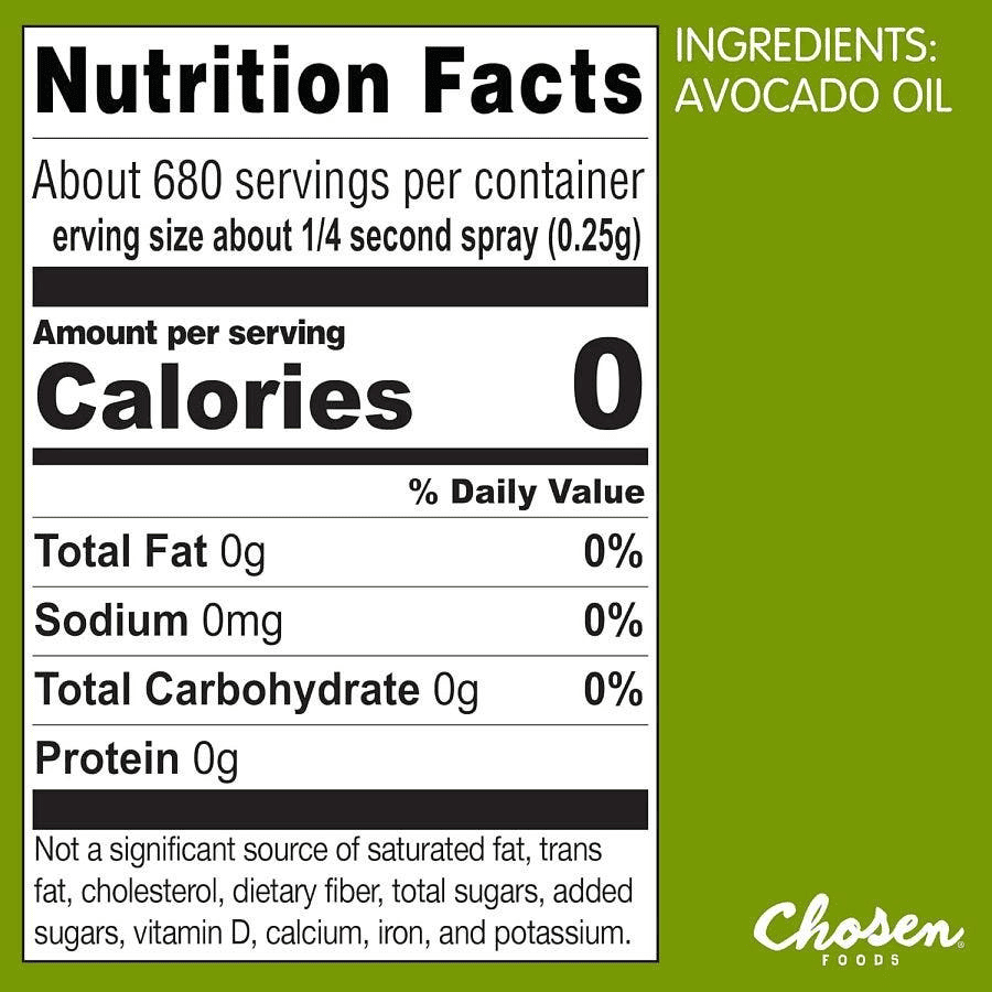 Chosen Foods 100% Pure Avocado Oil Spray 4.7 fl. oz. Chosen Foods 100% Pure Avocado Oil Spray 4.7 fl. oz. Chosen Foods 100% Pure Avocado Oil Spray 4.7 fl. oz. Chosen Foods 100% Pure Avocado Oil Spray 4.7 fl. oz. Chosen Foods 100% Pure Avocado Oil Spray 4.7 fl. oz.